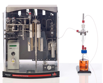 FlowCATは、連続フローの水素添加及び高圧触媒反応のスクリーニング及び最適化を効率よく行うことができます。温度制御した試験容器へガスと液をリアクターへ供給することにより、生成物が得られます。圧力、温度、液/ガスの供給速度は、ソフトウェアにより制御でき、それぞれの反応条件を試験中に変更できます。新規化合物のスクリーニング、新規触媒による収率の最適化及び少量生産に適用できます。
